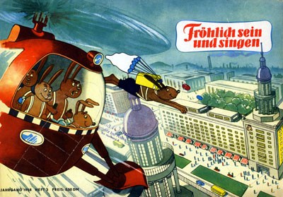 - Durch das Heft ziehen sich Comic Strips aus verschiedenen Ländern, deren Titelhelden sich zu einem Marsch nach Berlin zusammenfinden, um zum fünfjährigen Bestehen der FRÖSI zu gratulieren, und zwar in