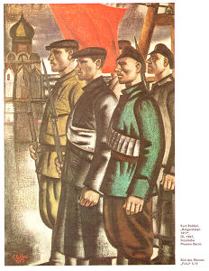 - Pergament-Poster mit Mütze zum Roten Oktober, gestaltet von Otto Sperling
