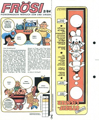 - Auf der Heftrückseite wird der FRÖSI-Spaß mit Otto und Alwin aus Heft 2/1984 aufgelöst.