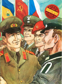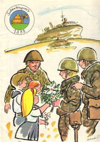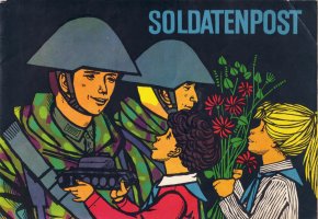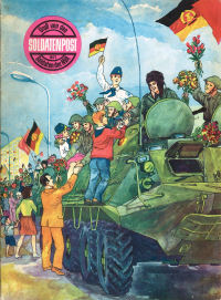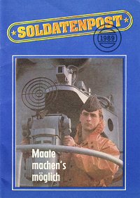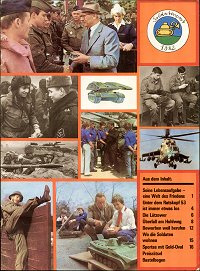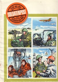 In den überformatigen Heften ging es fast ausschließlich um die Rolle der Nationalen Volksarmee bei der Sicherung der Zukunft der Pioniere und FDJler, und bei dieser Gelegenheit wurde auch noch ein bisschen Werbung für die Armeekarriere gemacht. Das Ganze wurde in bester FRÖSI-Tradition zum Teil spielerisch umgesetzt durch ein Würfelspiel auf dem Umschlag oder einen bastelbaren Panzer auf der Rückseite. Und natürlich gab es auch hier Comics, oft zweiseitig, getextet von Armeefachleuten und meist illustriert von Karl Fischer. Ein Beispiel gibt es hier.